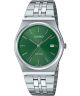 Casio Timeless Collection zielony MTP-B145D-3AVEF to męski zegarek kwarcowy, który przyciąga połączeniem srebrnej kolorystyki wraz z żółtym odcieniem tarczy. Model oferuje datownik dni miesiąca oraz 3-letnią żywotność baterii, a jego wodoszczelność sięgająca 5 ATM pozwala na drobne zachlapania.