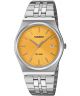 Zegarek Casio Timeless Collection zółty MTP-B145D-9AVEF to energetyczna propozycja dla mężczyzn. Na budowę tego kwarcowego modelu składają się koperta i bransoleta wykonane ze srebrnej stali szlachetnej oraz żółta tarcza zabezpieczona szkłem mineralnym. Na wysokości godziny trzeciej znajdziemy datownik dni miesiąca. 50 metrów wodoszczelności chroni wnętrze obudowy przed większymi zachlapaniami.
