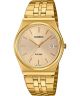 Casio Classic gold MTP-B145G-9AVEF to stylowy zegarek męski. Wyposażona w datownik dni miesiąca tarcza została osadzona w okrągłej kopercie ze stali szlachetnej pokrytej złotą powłoką PVD. Całość uzupełnia elegancka bransoleta z tego samego materiału. Model działa w oparciu o mechanizm kwarcowy, którego bateria działa około dwóch lat. Co więcej, produkt zawiera wodoszczelność w klasie 50 m oraz szkiełko mineralne.