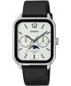 Zegarek Casio Classic MTP-M305L-7AVEF to męski model w eleganckim wydaniu, który łączy srebrną kopertę ze stali szlachetnej z czarnym, skórzanym paskiem. Jasna tarcza została uzupełniona o trzy subtarcze prezentujące dzień miesiąca, dzień tygodnia oraz fazy księżyca, co dodaje zegarkowi praktycznego charakteru. Mechanizm kwarcowy Casio 3477 odpowiada za działanie zegarka, a szkło mineralne chroni cyferblat. Wodoszczelność na poziomie 50 metrów sprawia, że zegarek dobrze radzi sobie z codziennymi sytuacjami, takimi jak deszcz czy mycie rąk. To klasyczna propozycja dla mężczyzn, którzy cenią prosty styl wzbogacony o dodatkowe funkcje.
