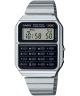 Wyrazisty zegarek zawsze przyciąga uwagę nie tylko właściciela. Prostokątna koperta ze srebrnego tworzywa została uzupełniona stalową bransoletą. Wyświetlacz modelu Casio VINTAGE Edgy CA-500WE-1AEF został zabezpieczony szkiełkiem mineralnym. Urządzenie posiada mechanizm kwarcowy, którego bateria działa około dwóch lat oraz liczne funkcje, takie jak m.in. 8-cyfrowy kalkulator, druga strefa czasowa, stoper lub alarm dzienny.
