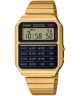 Prostokątna koperta ze złotego tworzywa wraz ze stalową bransoletą tworzą niepowtarzalny zegarek Casio VINTAGE Edgy CA-500WEG-1AEF. Model zawiera wyświetlacz, poprzez który można korzystać m.in. z 8-cyfrowego kalkulatora, stopera lub kalendarza automatycznego. Urządzenie działa w oparciu o mechanizm kwarcowy. Producent zapewnia trzyletnią gwarancję, którą można przedłużyć o dodatkowe trzy lata.