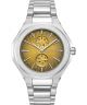 Cerruti Lucardo CIWGK0050803 to męski zegarek o odważnym designie, który przyciąga uwagę żółtą tarczą z efektownym giloszowaniem. Koperta i bransoleta wykonane ze stali szlachetnej w srebrnym kolorze podkreślają nowoczesny styl tego modelu. Zegarek wyposażono w kwarcowy mechanizm oraz sub-tarcze pokazujące datę i dzień tygodnia, co zwiększa jego funkcjonalność. Szafirowe szkło chroni tarczę, a wodoodporność na poziomie 50 metrów czyni go idealnym na co dzień.