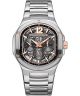 Cerruti 1881 Trento Skeleton CIWGK0072301 to męski zegarek zaprojektowany z myślą o osobach ceniących wyrazisty design i stalowe wykończenie. Srebrna koperta ze stali szlachetnej została połączona z bransoletą, tworząc spójną i elegancką całość. Tarcza typu skeleton w szarym odcieniu przyciąga uwagę odsłoniętą konstrukcją oraz sub-tarczami wskazującymi dzień tygodnia i dzień miesiąca. Cyferblat chroni mineralne szkiełko z antyrefleksem. Zastosowany mechanizm kwarcowy napędza model do działania. Wodoszczelność na poziomie 50 m pozwala na korzystanie z zegarka podczas kąpieli w wannie lub pod prysznicem.