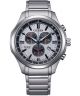 Zegarek męski Citizen Eco-Drive Super Titanium Chronograph AT2530-85A działa w oparciu o japoński mechanizm solarny H500. Można ładować go dowolnym źródłem światła. Zarówno koperta, jak i bransoleta modelu wykonane są ze srebrnego tytanu. Materiał ten jest lekki, mocny i odporny na negatywne czynniki zewnętrzne. Fakturowaną tarczę zabezpiecza przed zniszczeniem twarde szkło szafirowe. Produkt wyposażono w chronograf, tachymetr oraz datownik dni miesiąca. Zakręcany dekiel wraz z liczącą 100 metrów wodoszczelnością chronią wnętrze obudowy podczas pływania powierzchniowego.