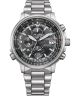 Citizen Promaster Sky Solar Radio Control Chronograph AT8300-58E to męski zegarek łączący nowoczesne funkcje z solidnym wykonaniem. Koperta i bransoleta ze stali szlachetnej w srebrnym kolorze zestawione są z czarną tarczą chronioną przez szafirowe szkło z powłoką antyrefleksyjną. Za działanie odpowiada mechanizm solarny Citizen H800, który wspiera m.in. synchronizacja radiowa, czas światowy, kalendarz oraz wskazanie czasu dobowego 12/24 h. Model posiada także chronograf, datownik dni miesiąca i powłokę luminescencyjną, a suwak logarytmiczny podkreśla jego lotniczy charakter. Wodoszczelność na poziomie 200 metrów umożliwia bezpieczne nurkowanie z akwalungiem.