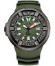 Citizen Promaster Diver BJ8057-17X to zielono-szary model z solarnym napędem Eco-Drive. Gumowy pasek połączono tu z kopertą ze stali szlachetnej. Szkło mineralne chroni tarczę z datownikiem dni miesiąca i powłoką luminescencyjną na wskazówkach oraz indeksach. Zakręcane dekiel i koronka, obrotowy bezel ze skalą minutową oraz licząca 300 metrów wodoszczelność sprawiają, że model świetnie sprawdzi się podczas nurkowania.