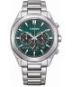 Citizen Modern Chrono CA4590-81X jest męskim zegarkiem zasilanym przez mechanizm solarny Citizen Eco-Drive B620 z 9-miesięczną rezerwą chodu. Zachowany w srebrnej kolorystyce idealnie komponuje się z różnorodnymi stylizacjami. Na zielonej tarczy muśniętej szlifem słonecznym widnieją czarne elementy wraz z analogowym oznaczeniem godzinowym. Dodatkowo Citizen Modern Chrono CA4590-81X ma do zaoferowania datownik dni miesiąca, sub-tarcze z czasem 24h i chronograf. Jego wodoszczelność wynosi 10 atm.