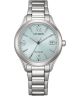 Zegarek damski Citizen Trendy Colors Eco-Drive FE6121-67L to model o spokojnej, codziennej stylistyce, zaprojektowany z myślą o czytelności i wygodzie noszenia. Koperta ze stali szlachetnej w srebrnym kolorze o szerokości 34 mm została połączona z bransoletą w tym samym wykończeniu, tworząc spójną konstrukcję. Niebieska tarcza z cyframi arabskimi zapewnia przejrzysty układ wskazań, a jej powierzchnię osłania szkło mineralne. Za działanie zegarka odpowiada japoński mechanizm solarny Eco-Drive Citizen J810, oferujący do 8 miesięcy rezerwy chodu po pełnym naładowaniu. Datownik dnia miesiąca w formie okienka stanowi praktyczne uzupełnienie specyfikacji. Wodoszczelność na poziomie 5 ATM oznacza odporność na zachlapania oraz krótkotrwały kontakt z wodą, np. podczas mycia rąk.