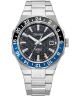 Prezentujemy elegancki męski zegarek Citizen-NB6031-56E z niezawodnym mechanizmem automatycznym Citizen Miyota 9054, który jest japońskim dziełem sztuki z 24 kamieniami łożyskowymi. Zegarek oferuje również imponującą rezerwę chodu wynoszącą 50 godzin, gwarantującą nieprzerwane monitorowanie czasu. Jego dekoracyjna tarcza w kolorze czarnym tworzy idealne tło dla wskaźnika GMT, umożliwiającego śledzenie czasu w różnych strefach. Szkiełko szafirowe z antyrefleksem zapewnia klarowność odczytu, podkreślając jego precyzję. Czarno-niebieski bezel nie tylko dodaje charakteru, ale także wskazuje aktualną porę dnia. Zegarek został wyposażony w odporność antymagnetyczną 16000 A/m, co sprawia, że jest niezawodny w różnych warunkach. Srebrna bransoleta i zakręcany dekiel to dodatkowe elementy, które podkreślają jergo elegancję i solidność.
