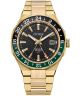 Citizen Series 8 Automatic GMT NB6033-51E to męski zegarek wyposażony w automatyczny mechanizm 9054 z funkcją GMT, umożliwiającą śledzenie czasu w dwóch strefach jednocześnie. Zielona tarcza kontrastuje z kopertą i bransoletą w złotym kolorze, tworząc nowoczesną i wyrazistą całość. Model został wykonany ze stali szlachetnej, a tarczę chroni szkło szafirowe. Wodoszczelność na poziomie 100 metrów umożliwia pływanie powierzchniowe z zegarkiem na nadgarstku.