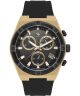 Santa Barbara Legend Chronograph SB.1.10659-3 to męski zegarek o wyrazistym, kontrastowym wyglądzie. Koperta o szerokości 44 mm została wykonana ze stali szlachetnej w złotym kolorze, co nadaje modelowi eleganckiego i przyciągającego wzrok charakteru. Czarny pasek silikonowy zapewnia wygodne dopasowanie do nadgarstka i podkreśla sportowy styl urządzenia. Czarna tarcza tworzy spójną kompozycję z paskiem, a czytelne wskazania ułatwiają codzienne użytkowanie. Datownik dni miesiąca umieszczono w praktycznym okienku. Mineralne szkiełko pokrywa cyferblat i osłania go przed działaniem czynników zewnętrznych. Model działa w oparciu o mechanizm kwarcowy, a funkcja chronografu umożliwia pomiar czasu. Wodoszczelność 50 metrów pozwala swobodnie brać prysznic lub kąpać się w wannie.