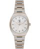 Zegarek damski Santa Barbara Unique SB.1.10665-6 łączy klasyczne zestawienie srebra i złota z dekoracyjną tarczą. Stalowa koperta oraz dopasowana bransoleta nadają urządzeniu ponadczasowego charakteru. Cyferblat w srebrnym odcieniu został ozdobiony giloszowaniem i kryształkami, które subtelnie odbijają światło i podkreślają kobiecy styl produktu. Ozdobne indeksy nadają tarczy wyrafinowanego wyglądu. Mineralne szkło osłania tarczę podczas codziennego użytkowania. Mechanizm kwarcowy napędza model do działania. Wodoszczelność na poziomie 50 m sprawia, że z zegarkiem można korzystać podczas kąpieli pod prysznicem lub w wannie. To elegancki dodatek dla osób ceniących dwukolorowe wykończenie i subtelne detale.