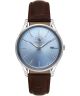 Zegarek męski Santa Barbara Noble SB.8.10011-4 został wyposażony w mechanizm kwarcowy i zamknięty w kopercie ze stali szlachetnej o szerokości 39 mm. Srebrna koperta została zestawiona z brązowym paskiem skórzanym, tworząc klasyczne połączenie kolorystyczne. Niebieska tarcza ze szlifem słonecznym nadaje powierzchni wyraźną strukturę, a datownik dni miesiąca w okienku umożliwia szybki odczyt aktualnej daty. Za ochronę tarczy odpowiada szkło mineralne. Model utrzymany jest w stonowanej stylistyce odpowiedniej do codziennego użytkowania. Wodoszczelność na poziomie 30 metrów oznacza odporność na niewielkie zachlapania, na przykład podczas mycia rąk.