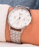 Chcesz wprowadzić odrobinę stylu do swojej garderoby i lubisz minimalistyczne zegarki? Cluse CW10703 z serii Minuit to połączenie designerskiego wyglądu z funkcjonalnym użytkowaniem. Dzięki zastosowaniu trzech sub-tarcz z datownikiem dni miesięcy, dni tygodnia i trybem 24h mamy gwarancję dokładnego pomiaru czasu. Srebrna, 5-linkowa bransoleta dzięki swojej budowie nadaje zegarkowi biżuteryjnego charakteru i powoduje, że Cluse CW10703 będzie wyglądał elegancko i gustownie. Za działanie każdego elementu odpowiada popularny mechanizm kwarcowy. Na białej tarczy widoczne są srebrne, analogowe wskazówki i rzymska dwunastka. Ten model z pewnością będzie modny w każdym sezonie.