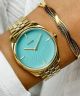 Zegarek damski Cluse Féroce Petite CW11220 to elegancki i praktyczny dodatek, który podkreśli styl każdej kobiety. Bransoleta i koperta o złotej barwie wykonane zostały ze stali szlachetnej. Fakturowana tarcza o turkusowym kolorze została pokryta mineralnym szkłem. Kwarcowy mechanizm wprowadza model w ruch. Wodoodporność do 50 metrów sprawia, że zegarek można nosić nawet podczas prysznica.