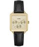Zegarek damski Cluse La Tétragone CW13806 to model, który łączy w sobie nowoczesny design z funkcjonalnością. Posiada złotą kopertę wykonaną ze stali szlachetnej, której szerokość wynosi 30 mm. Beżowa tarcza zegarka jest przykryta mineralnym szkłem, a także na niej znajdują się datownik z dniem tygodnia i miesiąca oraz sub-tarcza z czasem dobowym. Model wyposażony jest w skórzany czarny pasek, który doskonale kontrastuje z kolorystyką koperty. Wodoszczelność na poziomie 50 metrów sprawia, że jest on odporny na drobne zachlapania, np. podczas kąpieli. Produkt jest napędzany mechanizmem kwarcowym.