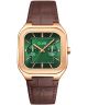 Zegarek męski Cluse Quadrus CW26205 to elegancki model utrzymany w estetyce łączącej klasykę z nowoczesnym, modowym charakterem. Koperta o szerokości 35 mm i smukłej grubości 9 mm została wykonana ze stali szlachetnej w kolorze różowego złota, co nadaje całości wyrafinowanego i ciepłego wyglądu. Zielona tarcza ze szlifem słonecznym wyróżnia się subtelnym połyskiem i zmienia odcień w zależności od kąta padania światła, podkreślając minimalistyczny, a zarazem stylowy charakter zegarka. Całość uzupełnia brązowy skórzany pasek o szerokości 18 mm, który dodaje klasy i zapewnia komfort noszenia na co dzień.