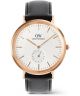 Zegarek Daniel Wellington Classic Multi-Eye Sheffield Rose Gold DW00100870 wyróżnia się eleganckim połączeniem koperty w kolorze różowego złota i czarnego skórzanego paska. Na tarczy w jasnym odcieniu znajdują się wskazania osłonięte szkłem mineralnym. Za pracę zegarka odpowiada mechanizm kwarcowy. Wodoszczelność na poziomie 30 metrów chroni model przed drobnymi zachlapaniami w codziennym użytkowaniu.