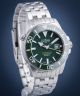 Zegarek męski Davosa Argonautic BG Automatic 161.528.07 od szwajcarskiej manufaktury to sprawdzony diver premium o niezwykle wytrzymałej budowie. Prezentuje on wykonanie z wysokogatunkowych materiałów – stali szlachetnej oraz ceramiki BEYOND STEEL®, czyli ciężkiego i twardego materiału odpornego na bardzo wysokie temperatury. Na zielonej tarczy, chronionej przez szkło szafirowe, znajdują się satynowe indeksy z Super-LumiNovą BG W9 oraz datownik. oprócz tego zaletami są obrotowy bezel i zawór helowy. Mechanicznym sercem zegarka jest automatyczny mechanizm DAV 3021.
