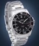 Zegarek Davosa Argonautic Lumis Automatic 161.529.20 przypadnie do gustu mężczyznom, których pasją jest nurkowanie. Giloszowana, czarna tarcza z datownikiem dnia miesiąca została pokryta szkłem szafirowym z antyrefleksem, które wyróżnia się wysoką jakością i twardością. Tryt na wskazówkach i indeksach pozwala na odczytywanie godziny w ciemnych zakamarkach i podwodnych głębinach. Szwajcarski mechanizm automatyczny DAV 3021 osadzony na 26 kamieniach z 38-godzinną rezerwą chodu odpowiada za precyzyjne wskazanie godziny. Dodatek posiada zawór helowy, obracający się w jednym kierunku ceramiczny pierścień nurkowy z wkładką nurkową Beyond Steel®, zakręcaną koronkę i zakręcany dekiel. Wodoszczelność szacuje się na poziomie 30 ATM.