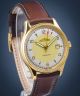Delbana Rotonda Automatic 42601.722.6.029 to męski zegarek automatyczny, który w ruch wprawia mechanizm Sellita SW200 Swiss Made, widoczny przez zakręcany, przeszklony dekiel. Rezerwa chodu wynosi 38 godzin. W kopercie ze stali szlachetnej pozłacanej metodą PVD mieści się giloszowana tarcza w jasnym odcieniu żółtego. Na przykrytym szkłem szafirowym z antyrefleksem cyferblacie znajdziemy datownik dni miesiąca oraz wskazówki i oznaczenia pokryte powłoką luminescencyjną. Obudowę umocowano na pasku z brązowej skóry. Całość nawiązuje wyglądem do stylistyki retro. Produkt jest odporny na większe zachlapania.