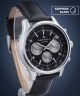 DESTELL Circinus Chronograph Sapphire CR415-15-201L to męski zegarek, który łączy klasykę z nowoczesną funkcjonalnością. Czarna tarcza z subtelnymi detalami została osadzona w srebrnej kopercie wykonanej z metalu i uzupełniona skórzanym paskiem w tym samym kolorze. Model oparty jest na japońskim mechanizmie kwarcowym Seiko VD54, który oferuje sprawne działanie funkcji chronografu. Zegarek wyposażono w szafirowe szkło, trudne do zarysowania i odpowiednie do codziennego użytkowania. Wodoszczelność 50 metrów chrono zegarek przed zachlapaniami.