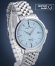 DESTELL Pictor Sapphire PT405-05-205J to męski zegarek, który łączy klasyczne wykończenie z nowoczesnym akcentem w postaci niebieskiej tarczy. Delikatna faktura nadaje jej głębi, a całość zamknięto w srebrnej kopercie z metalu i połączono z bransoletą ze stali szlachetnej 316L. Model wyposażono w mechanizm kwarcowy Miyota 2315 oraz datownik pokazujący dzień miesiąca. Szafirowe szkło zapewnia skuteczną ochronę przed zarysowaniami. Wodoszczelność 50 metrów sprawia, że zegarek można bezpiecznie nosić na co dzień – także podczas mycia rąk, w deszczu czy przy zachlapaniach – ale nie jest przeznaczony do zanurzania.