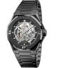 Zegarek męski Epos Sport Skeleton Automatic Skeleton 3506.139.25.15.35 wyróżnia się czarną kopertą ze stali szlachetnej pokrytej powłoką PVD oraz otwartą konstrukcją tarczy typu skeleton, dzięki której widoczna jest praca mechanizmu. Mechanizm automatyczny Sellita SW200 Swiss Made z 26 kamieniami i rezerwą chodu 38 godzin odpowiada za działanie zegarka. Model wyposażono w szkło szafirowe z powłoką antyrefleksyjną oraz zakręcany, przezroczysty dekiel. Indeksy liniowe oraz elementy pokryte Super-LumiNova zwiększają czytelność wskazań. Zegarek został osadzony na czarnej bransolecie stalowej PVD. Wodoszczelność 100 metrów pozwala na pływanie powierzchniowe i korzystanie z zegarka w warunkach intensywniejszego kontaktu z wodą, jednak nie jest to poziom przeznaczony do nurkowania.