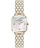 Escada Ava EAWLG0000115 — це жіночий годинник з елегантним дизайном, який вирізняється корпусом золотого кольору та браслетом із сріблясто-золотистою багатокольоровою обробкою. Сталевий корпус покритий IP-покриттям, що надає йому характерного відтінку та добре поєднується з загальним виглядом. Циферблат, виготовлений з перламутру, м'яко відбиває світло, а використані діаманти підкреслюють його декоративний характер. За захист циферблата відповідає сапфірове скло, яке важко подряпати. Модель працює на основі кварцового механізму Ronda 751.3 і має класичне відображення часу двома стрілками. Браслет оснащений застібкою-метеликом. Водонепроникність на рівні 30 метрів означає стійкість до невеликих бризок, наприклад, під час миття рук або під час невеликого дощу.