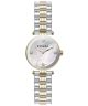 Escada Scarlett EAWLG0000211 — це жіночий годинник з елегантним дизайном, який вирізняється поєднанням золотого корпусу та двоколірного браслета у відтінках срібла та золота. Сталевий корпус покритий IP-покриттям, що надає йому характерного кольору та гармонійно поєднується з загальним виглядом. Циферблат, виготовлений з білого перламутру, м'яко відбиває світло, а використані діаманти підкреслюють його декоративний характер. За захист циферблата відповідає сапфірове скло, яке важко подряпати. Модель працює на основі кварцового механізму Ronda 751.3 і має класичний показ часу двома стрілками. Браслет оснащений застібкою-метеликом. Водонепроникність на рівні 30 метрів означає стійкість до невеликих бризок, наприклад, під час миття рук або під час невеликого дощу.