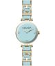 Escada Scarlett EAWLG0000225 — це жіночий годинник із виразним і водночас мінімалістичним дизайном, який привертає увагу контрастом кольорів. Золотий корпус із сталі покритий IP-покриттям і поєднаний з браслетом-банглом, створюючи цілісний вигляд. Синій циферблат з емалевим покриттям надає моделі свіжості та виділяє її серед класичних варіантів. За захист циферблата відповідає сапфірове скло, яке важко подряпати. Модель працює на основі кварцового механізму Ronda 751.3 і має класичний показ часу двома стрілками. Браслет оснащений застібкою-метеликом. Водонепроникність на рівні 30 метрів означає стійкість до невеликих бризок, наприклад, під час миття рук або під час невеликого дощу.