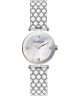 Escada Scarlett EAWLG0000231 — це жіночий годинник з елегантним дизайном, який вирізняється однотонною сріблястою гамою кольорів та світлим циферблатом. Корпус та браслет виготовлені зі сталі, створюючи цілісний та класичний вигляд. Циферблат з перламутру білого відтінку делікатно відбиває світло, а використані діаманти підкреслюють його декоративний характер. За захист циферблата відповідає сапфірове скло, яке важко подряпати. Модель працює на основі кварцового механізму Ronda 751.3 і має класичний показ часу двома стрілками. Браслет оснащений застібкою-метеликом. Водонепроникність на рівні 30 метрів означає стійкість до невеликих бризок, наприклад, під час миття рук або під час невеликого дощу.