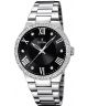 Zegarek Festina Classic F16719-2 to damski czasomierz idealny zarówno do eleganckiej stylizacji, jak i do noszenia na co dzień. Posiada on srebrną stalową bransoletę oraz utrzymaną w tej samej barwie i zdobioną kryształkami kopertę, wykonaną z wysokiej jakości stali nierdzewnej. Stylową, czarną tarczę przykryto szkiełkiem mineralnym, które w zadowalający sposób chroni przed zarysowaniami i obtłuczeniami. Zegarek działa w oparciu o niesłychanie precyzyjny mechanizm kwarcowy, zasilany baterią. Wodoszczelność została ustalona w klasie 50 metrów, co oznacza, że do wnętrza czasomierza nie dostanie się woda w przypadku zachlapań. Zegarek Festina Classic F16719-2 objęto dwuletnią gwarancją producenta.