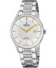 Festina 40 mm F20067-2 to elegancki zegarek męski, z kopertą i bransoletą ze stali szlachetnej w kolorze srebrnym. Srebrna tarcza zegarka wyróżnia się złotymi wskazówkami. Zegarek charakteryzuje się wodoszczelnością 10 ATM, co czyni go odpornym na zachlapania oraz umożliwia pływanie powierzchowne. Zasilany kwarcowym mechanizmem Swiss Made, a jego tarczę chroni szkło szafirowe, które jest odporne na zarysowania. Dodatkowo, zegarek wyposażono w funkcję datownika z dniem miesiąca. Produkt objęty jest 2-letnią gwarancją na zegarek oraz 5-letnią gwarancją na szkło.