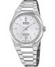 Festina Sapphire Automatic F20083-1 to zegarek męski wyposażony w mechanizm automatyczny Swiss Made P024-3h201 z rezerwą chodu do 38 godzin. Model posiada srebrną tarczę z datownikiem dni miesiąca, którą chroni szafirowe szkło. Koperta i bransoleta ze stali szlachetnej w srebrnym kolorze nadają zegarkowi spójny wygląd. Wodoszczelność na poziomie 100 metrów pozwala korzystać z niego również podczas pływania.