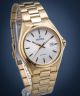 Męski zegarek Festina F20555/2 Classic prezentuje stylowe i tradycyjne wykonanie ze złotej stali szlachetnej. Klasy dodaje gładka i czytelna biała tarcza z datownikiem dni miesiąca oraz wskazówkami pokrytymi luminescencją. Wodoszczelność 5 ATM chroni mechanizm kwarcowy przed większymi zachlapaniami.