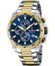 Festina F20562/2 On The Square to elegancki męski zegarek kwarcowy, który łączy nowoczesny design z funkcjonalnością. Koperta i bransoleta wykonane są ze stali szlachetnej w kolorze srebrno-złotym, co nadaje zegarkowi luksusowy wygląd. Niebieska tarcza tworzy atrakcyjny kontrast z resztą zegarka. Mineralne szkło chroni tarczę przed zarysowaniami. Zegarek wyposażony jest w funkcje datownika dni miesiąca oraz chronografu, co czyni go praktycznym i stylowym. Wodoszczelność do 100 metrów zapewnia trwałość i niezawodność. Produkt objęty jest 2-letnią gwarancją oraz dodatkową 5-letnią ochroną na szkło.