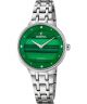 Festina Mademoiselle F20600-B to zegarek damski, w którym srebrna koperta ze stali szlachetnej o wysokości 31 mm została połączona ze srebrną bransoletą. Zielona tarcza nadaje całości wyrazistego charakteru, a za działanie modelu odpowiada mechanizm kwarcowy. Tarcza zabezpieczona jest szkłem mineralnym, a wodoszczelność na poziomie 50 metrów chroni zegarek przed niewielkimi zachlapaniami.