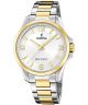 Jeśli szukasz klasycznie eleganckiego dodatku, zegarek męski Festina Solar Energy Champagne Petite F20657/1 sprawdzi się doskonale. Ten solarny model ma kopertę i bransoletę ze stali szlachetnej w kolorach srebrnym i złotym. Białą tarczę pokrytą szkłem mineralnym wzbogacono o wskazówki i indeksy pokryte powłoką luminescencyjną. Produkt charakteryzuje odporność na większe zachlapania.
