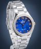 Zegarek damski Festina Solar Energy Blue Petite F20658/2 to stylowe połączenie srebra i niebieskiego, przełamane różowozłotymi akcentami. Do wykonania koperty i bransolety modelu użyto stali szlachetnej, tarczę zrobiono natomiast z masy perłowej. Ochronę cyferblatu zapewnia szkło mineralne. Bezel dekorują drobne kryształki, które znalazły zastosowanie także jako indeksy. Dzięki liczącej 50 metrów wodoszczelności produkt jest odporny na większe zachlapania.