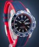 Męski zegarek Festina Diver Professional F20662/1 to diver odpowiednio przystosowany do uprawiania różnych sportów wodnych. Wygodę podczas aktywności zapewnia niebiesko-czerwony elastyczny pasek z gumy. W stalowej obudowie, wodoszczelnej do 200 m, umieszczono mechanizm kwarcowy z datownikiem Day Date. Dodatkowo zaletami są obrotowy bezel i zakręcane koronka i dekiel. Czytelność w ciemności zapewniają duże znaczniki pokryte masą Super-LumiNova, znajdujące się na cieniowanej niebiesko-czarnej tarczy.
