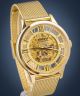 Zegarek męski Festina Automatic Skeleton Sapphire F20667/1 to oryginalny dodatek do męskiej szafy. Zarówno okrągła koperta, jak i bransoleta mesh wykonane są ze stali szlachetnej pozłacanej metodą PVD. Tarczę typu skeleton zabezpiecza przed zniszczeniem twarde szkło szafirowe. Poprawne działanie całości zapewnia mechanizm automatyczny. Wodoszczelność licząca 50 metrów chroni go przed większymi zachlapaniami.