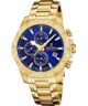 Festina Timeless Chronograph F20705-3 to męski zegarek kwarcowy wyposażony w mechanizm Miyota JS15. Model posiada funkcję chronografu obejmującą małą tarczę sekundową, licznik 30 minut oraz wskaźnik 24-godzinny. Koperta i bransoleta w złotym kolorze wykonane zostały ze stali szlachetnej, a całość uzupełnia niebieska tarcza. Cyferblat zabezpiecza szkło mineralne, a zakręcany dekiel podnosi trwałość konstrukcji. Wodoszczelność na poziomie 100 metrów pozwala na użytkowanie zegarka także podczas pływania.