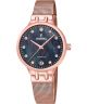 Zegarek damski Festina Mademoiselle F20716-2 to elegancki model, który łączy w sobie nowoczesny styl z klasycznym wykończeniem. Koperta w kolorze różowego złota wykonana jest ze stali szlachetnej, co nadaje mu wyjątkowego charakteru. Czarna tarcza zegarka jest przykryta szkiełkiem szafirowym, które chroni przed zarysowaniami. Szerokość koperty wynosząca 33 mm sprawia, że zegarek jest delikatny i kobiecy. Bransoleta typu mesh, również w kolorze różowego złota, doskonale komponuje się z całością, zapewniając wygodę noszenia. Zegarek charakteryzuje się wodoszczelnością do 50 metrów, co pozwala na swobodne użytkowanie podczas kąpieli czy spaceru w deszczu. Dodatkowo, zegarek objęty jest gwarancją na 2 lat.