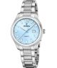 Festina Classic Bracelet F20737-3 to elegancki damski zegarek z kopertą ze stali szlachetnej o wysokości 34 mm, połączoną ze srebrną bransoletą w tym samym wykończeniu. Niebieska tarcza nadaje modelowi wyrazistego charakteru i została wyposażona w praktyczny datownik dni miesiąca. Mineralne szkło chroni tarczę, a o pracę zegarka dba mechanizm kwarcowy. Wodoszczelność na poziomie 50 metrów chroni go przed zachlapaniami.