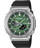 Zegarek Casio G-SHOCK Octagon Bluetooth Solar GBM-2100A-1A3ER opiera swe działanie o nowoczesny mechanizm solarny. Pasek z czarnego tworzywa łączy się tu ze srebrną kopertą, do której wykonania użyto żywicy wzmocnionej włóknem szklanym oraz stali szlachetnej. Za ochronę zielonej tarczy odpowiada szkło mineralne. Do funkcji produktu należą: bluetooth, czas światowy, oszczędzanie energii, znajdź telefon, wyciszenie, 5 alarmów dziennych, wieczny kalendarz, stoper, timer oraz podświetlenie Super Illuminator. Model wyróżnia wstrząsoodporność i licząca 200 metrów wodoszczelność.