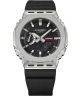 Zegarek męski Casio G-SHOCK 2100 Series GM-2100M-1AER to model o charakterystycznej, odpornej konstrukcji łączącej kompozyt z elementami stali. Srebrna koperta zestawiona z czarnym paskiem z tworzywa nadaje zegarkowi klasyczny, sportowy wygląd, a czarna tarcza z oferuje czytelny układ analogowo-cyfrowy. Zastosowano tu japoński mechanizm kwarcowy oraz funkcje, takie jak czas światowy, datownik dnia miesiąca i tygodnia, stoper, minutnik i pięć alarmów dziennych. Podświetlenie Iluminator ułatwia odczyt wskazań po zmroku, natomiast mineralne szkło chroni tarczę przed uszkodzeniami mechanicznymi. Wodoszczelność 200 metrów umożliwia pływanie i nurkowanie powierzchniowe, a wstrząsoodporna konstrukcja G-SHOCK sprawia, że model dobrze sprawdza się w aktywnym użytkowaniu.