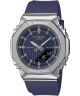 Casio G-SHOCK GM-S2110SH-2AER to damski model z limitowanej serii, który łączy sportową funkcjonalność z charakterystyczną dla linii masywną stylistyką. Srebrna koperta ze stali szlachetnej ma 41 mm szerokości i została zestawiona z granatowym paskiem z tworzywa. Fakturowaną, granatową tarczę osłania mineralne szkiełko, a jej podświetlenie zapewnia LED Super Illuminator. Na cyferblacie umieszczono datownik dni tygodnia i miesięcy, czas światowy oraz możliwość ustawienia formatu 12/24 h. Model wyposażono w stoper, minutnik i pięć alarmów dziennych z sygnałem dźwiękowym. Dekiel jest zakręcany, co zwiększa ochronę konstrukcji. Wodoszczelność 200 metrów sprawia, że z zegarka można korzystać podczas pływania i nurkowania bez akwalungu. Urządzenie działa w oparciu o japoński mechanizm kwarcowy i jest objęte 3-letnią gwarancją z możliwością przedłużenia o kolejne 3 lata.