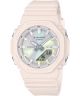 Zegarek damski G-Shock Analog-Digital GMA-P2100PC-4AER to wstrząsoodporny model o subtelnych, różowych barwach, zachowujący klasyczny kształt oktagonalnej koperty. Koperta i pasek z tworzywa w kolorze różowym tworzą spójną i lekką konstrukcję. Sercem zegarka jest japoński mechanizm kwarcowy. Cyferblat chroniony szkłem mineralnym, wyposażono w zaawansowane funkcje mierzenia czasu: stoperz zakresem do 24 godzin oraz timer 24h. Komfort użytkowania podnoszą 5 alarmów dziennych oraz alarm daty. Czytelność w słabych warunkach wspiera Dual Illuminator i powłoka luminescencyjna. Zegarek posiada wieczny kalendarz i czas światowy. Wodoszczelność do 200 metrów pozwala na swobodne pływanie i nurkowanie.